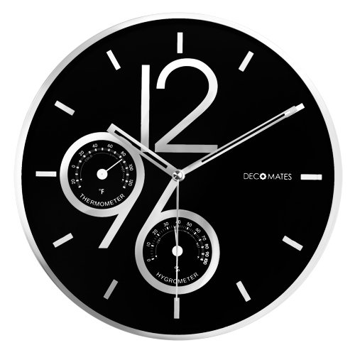 Are you looking for DecoMates Non-Ticking Silent Wall Clock with Built-In Thermometer (Fahrenheit) / Hygrometer - Sharp Shimmer Multiplex (Black) product ? We offer DecoMates Non-Ticking Silent Wall Clock with Built-In Thermometer (Fahrenheit) / Hygrometer - Sharp Shimmer Multiplex (Black) that you can buy to be useful in the decision for you. You can check prices before you buy to compare the price you are happy and see details DecoMates Non-Ticking Silent Wall Clock with Built-In Thermometer (Fahrenheit) / Hygrometer - Sharp Shimmer Multiplex (Black).