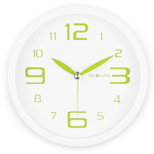 Adorn any room with this Fresh Mint Non-Ticking Silent Wall Clock from DecoMates!The colored numerals and hands contrast with the white background and rim for clear view and because it has all three hands, this clock will give you an accurate read on time down to the second so you do not need to second-guess yourself.